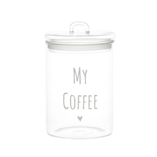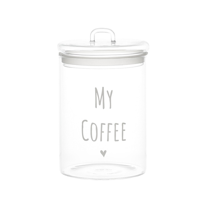 Barattolo in vetro borosilicato decoro My Coffee completo di guarnizione ermetica.