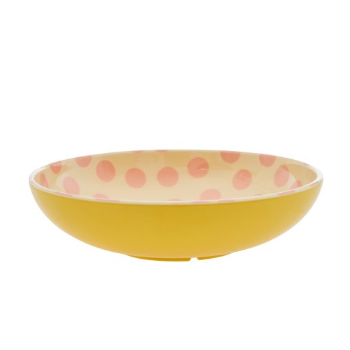 Ciotola grande in melamina fantasia pois rosa. Ideale per cucinare, impastare come portata per la tavola.