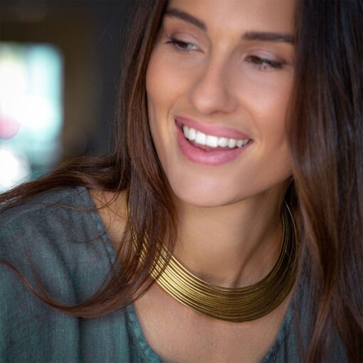 Girocollo rigido con multiple linee.