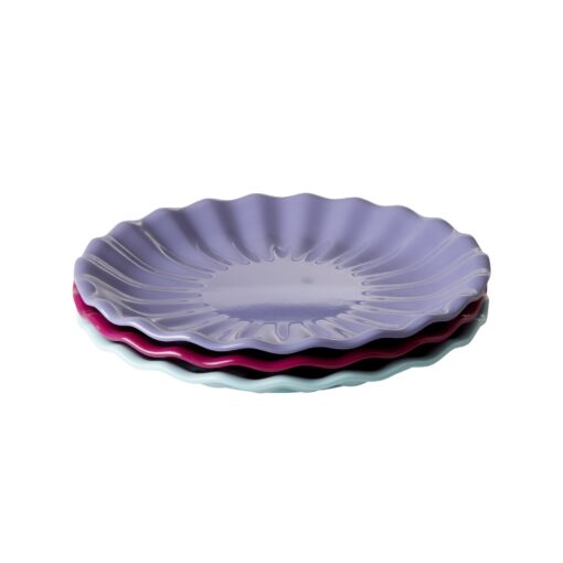 Grazioso piattino in melamina color lavanda con superficie ondulata