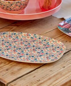 Vassoio rettangolare in melamina fantasia fiorellini, ideale sia come piatto da tavola, da portata, per buffet e come porta oggetti di vario genere.